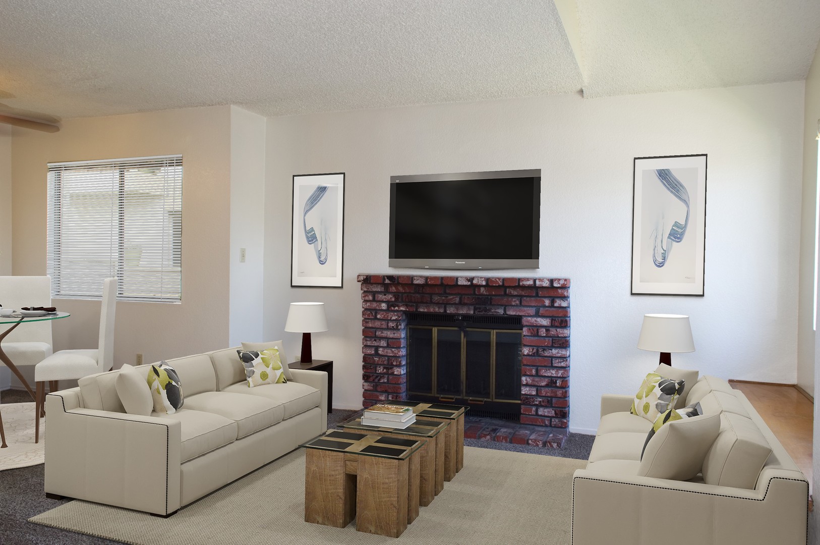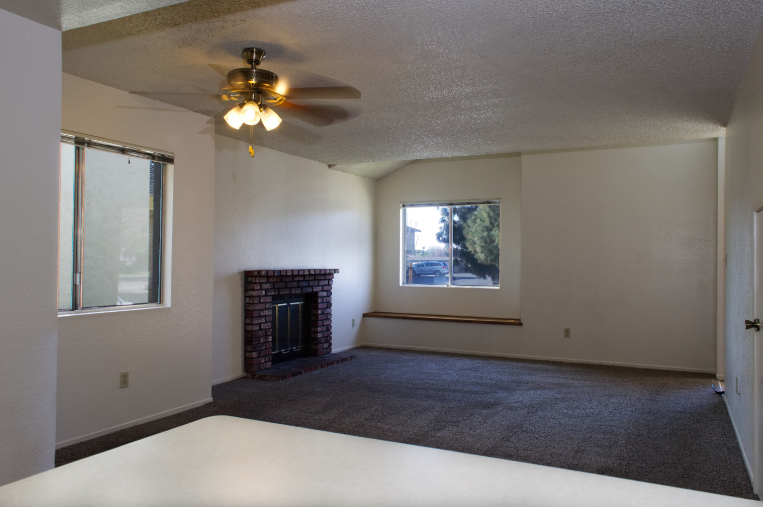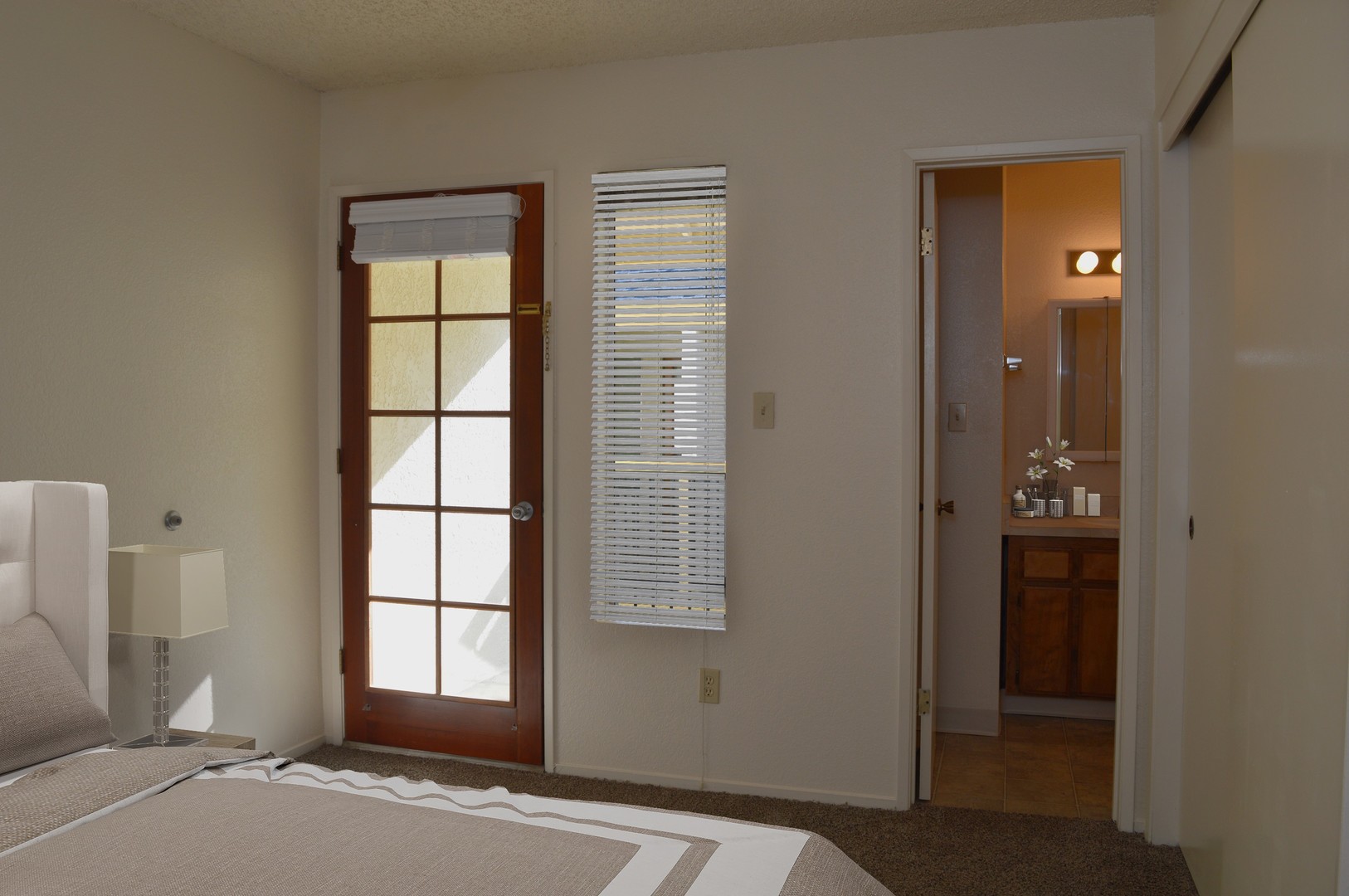 This beautiful 2-level townhome apartment offers cathedral ceilings, and skylights for a bright, spacious feel. Enjoy central heating/AC, a living room with a ceiling fan, fireplace and window seat. Plus, a fully equipped kitchen with a breakfast bar. Relax on your fully enclosed private ground floor patio. Upstairs bedrooms feature separate sink/vanity areas and a shared bath/shower. The main bedroom is extra roomy with a window seat, and the second bedroom has a private deck. Enjoy taking a dip in the sparkling pool!